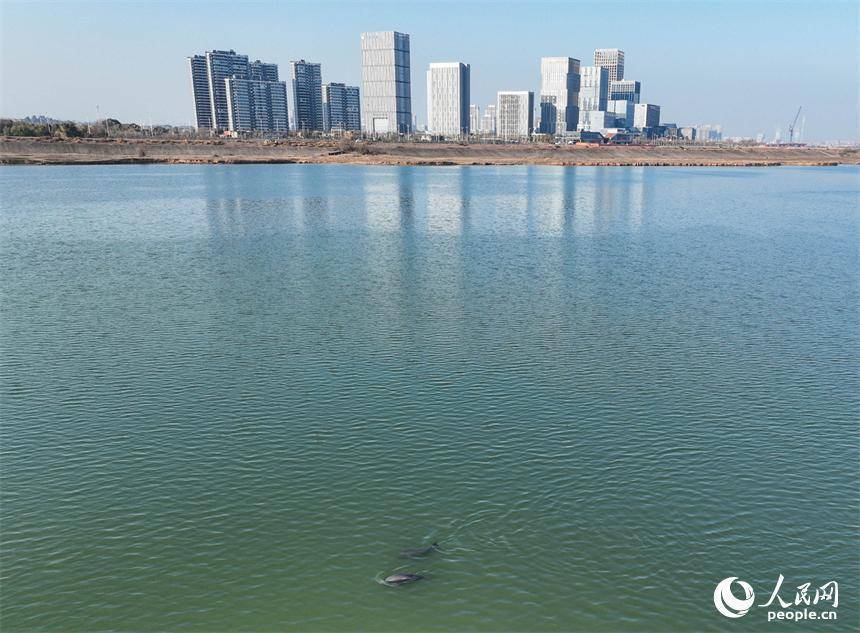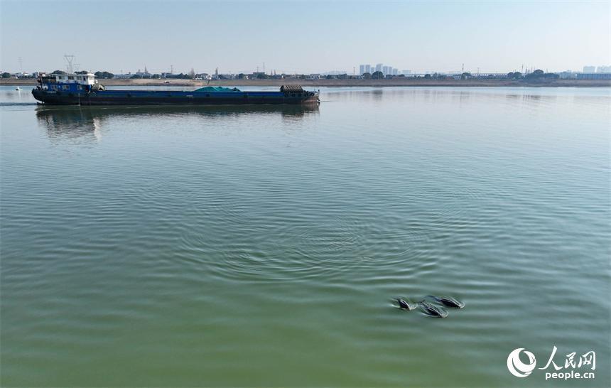 赣江南昌段“江豚湾”,数头江豚在赣江中戏水觅食。人民网记者 时雨摄人民网南昌1月16日电 (记者时雨)15日,冬日暖阳下,赣江南昌段“江豚湾”碧波微漾。数头江豚不时跃出水面,黝黑光滑的脊背划开道道银波,嬉游潜跃间,溅起晶莹水花,为静谧水面添上灵动气息。