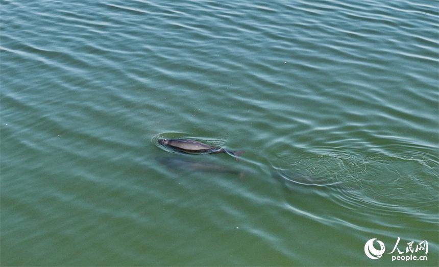 赣江南昌段“江豚湾”,数头江豚在赣江中戏水觅食。人民网记者 时雨摄