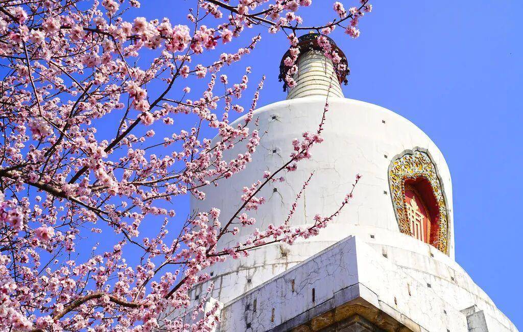 北海公园山桃映白塔美景 拍摄于3月15日