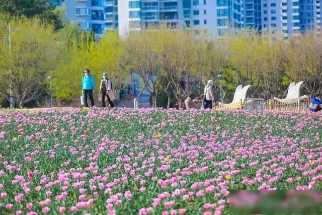 集休闲、观景于一体的虞美人广场,拥有超大面积的郁金香花海。漫步其中,五彩缤纷的郁金香与周围的景色相得益彰,“面朝大海,春暖花开”的诗意在这里照进现实。