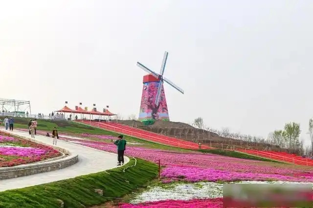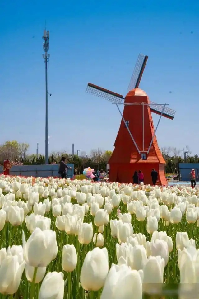 走进海螺广场郁金香花园,仿佛来到了梵高的“油画世界”!斑斓的郁金香织就彩虹色的花毯,加上风车、树木的映衬,让人恍惚间以为自己身处荷兰庄园。