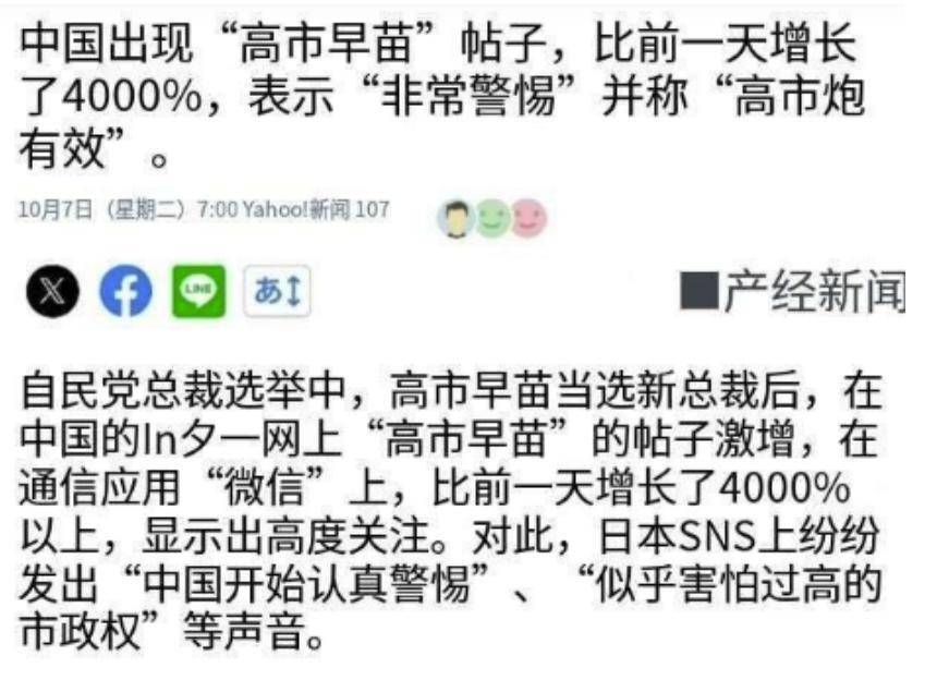 日本权威媒体产经新闻报道称,“高市炮奏效了”“高市先生让中国害怕”……