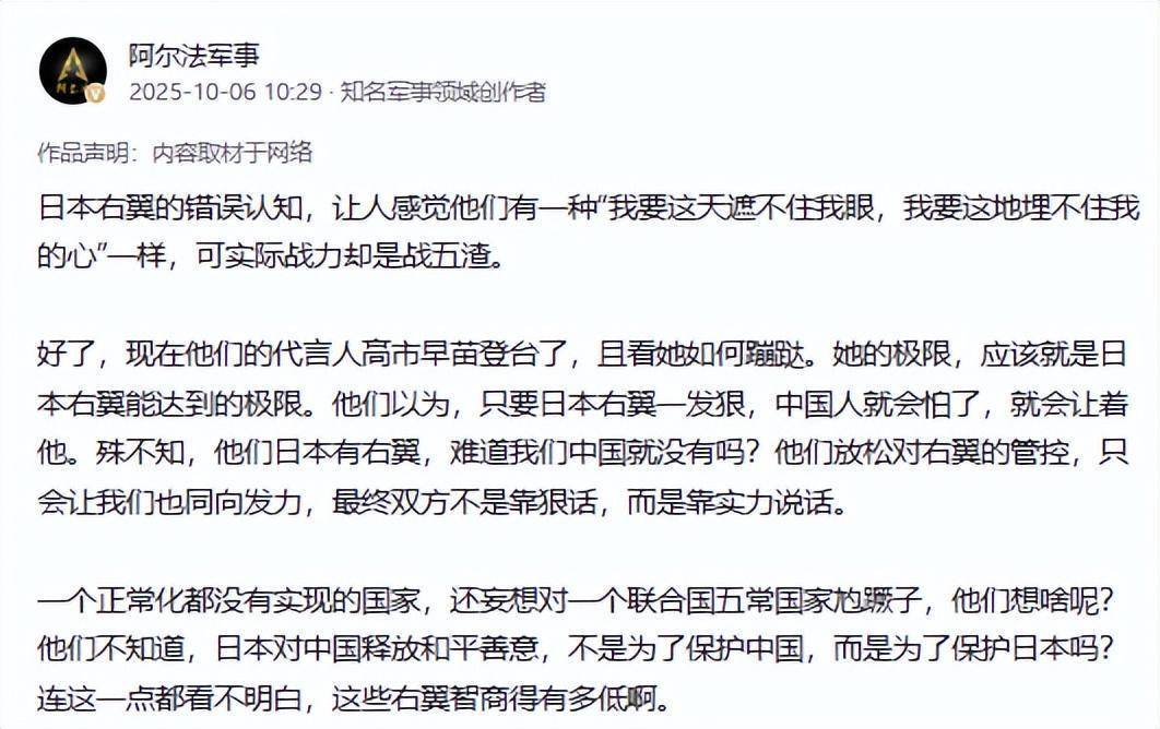 看了高市早苗的施政演讲草案,是不是精日的恨日的都觉得有些失望。
