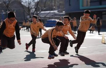 在北京第二实验小学,学生们正在操场上进行锻炼。新华社记者 谢晗 摄