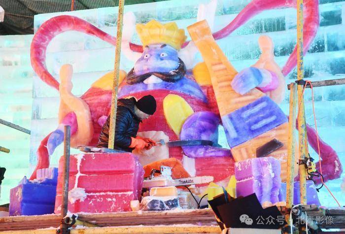 据悉,冰灯艺术节将持续至3月初,历时50余天。运送冰块