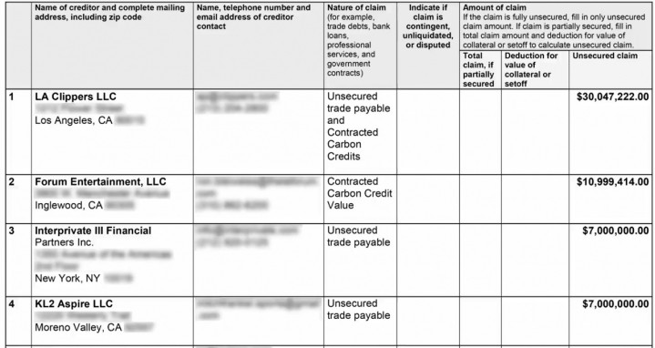 目前在这家公司的债权人名单中,最大的债主就是洛杉矶快船(3004万),而第四位的Kl2 Aspire 也正是莱昂纳德的公司(700万)